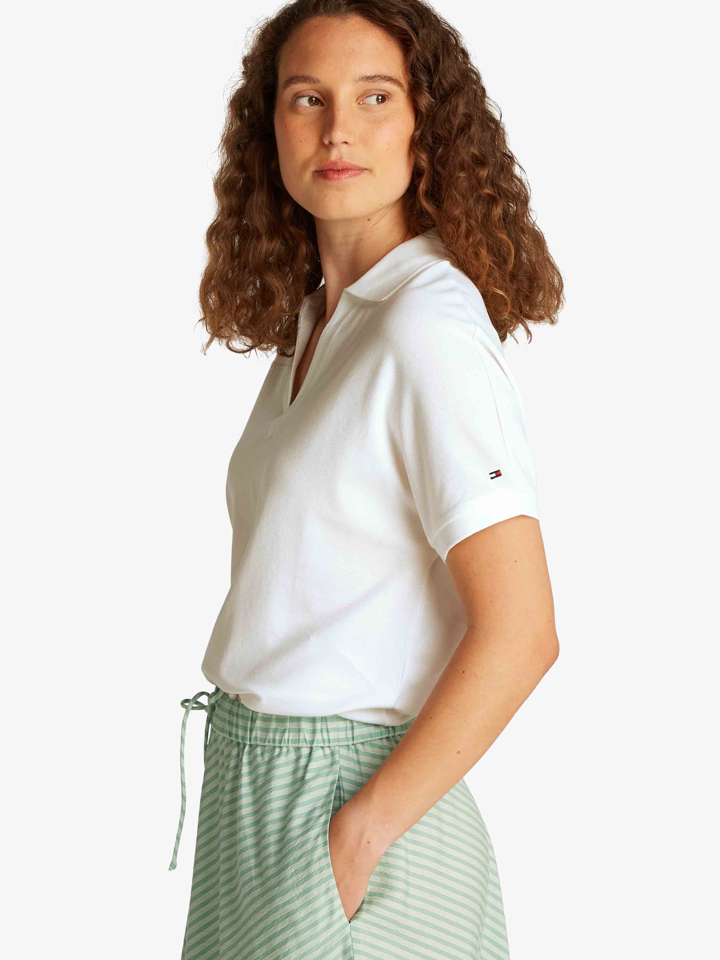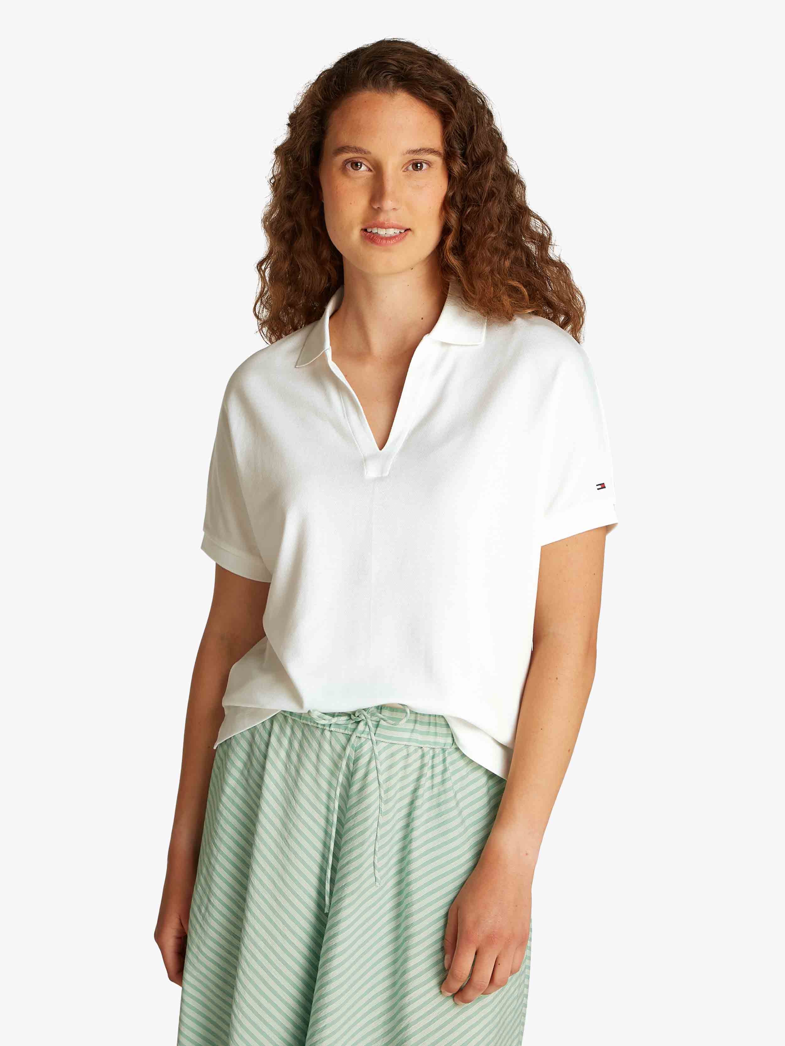Tommy Hilfiger - LYOCELL OPEN-NK RELAXED POLO SS , XS , ECRU , Style WW0WW44512