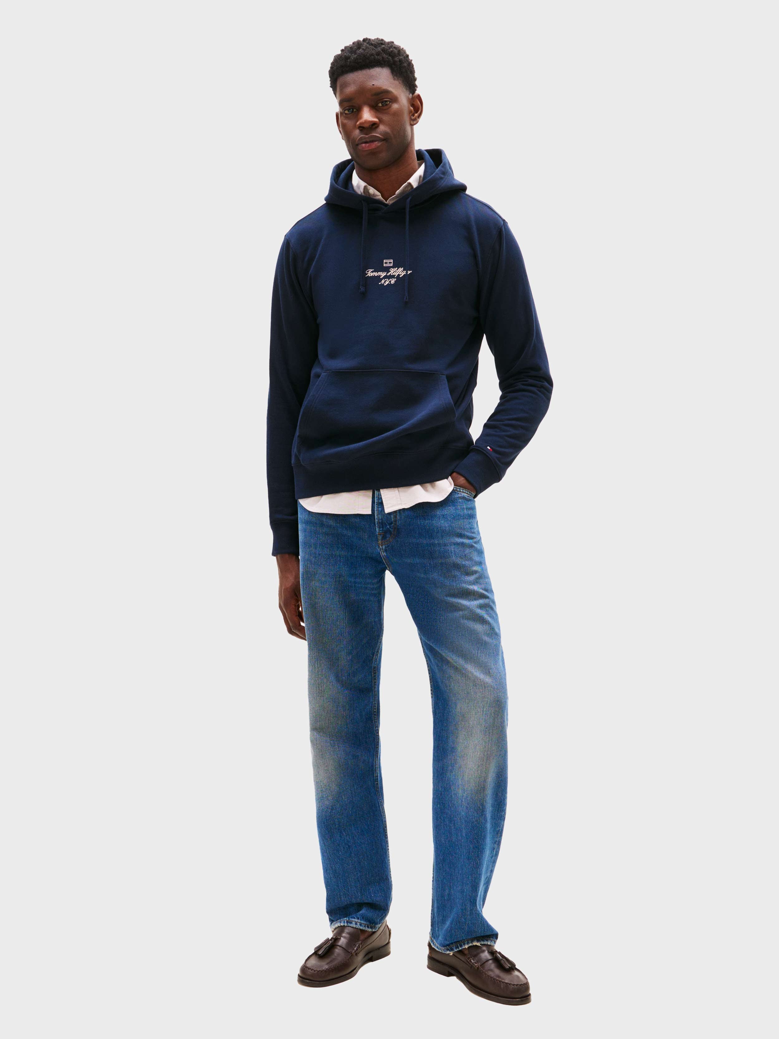 Tommy Hilfiger - OUTLINE FLAG SCRIPT HOODIE , S , Desert Sky , Style MW0MW39372