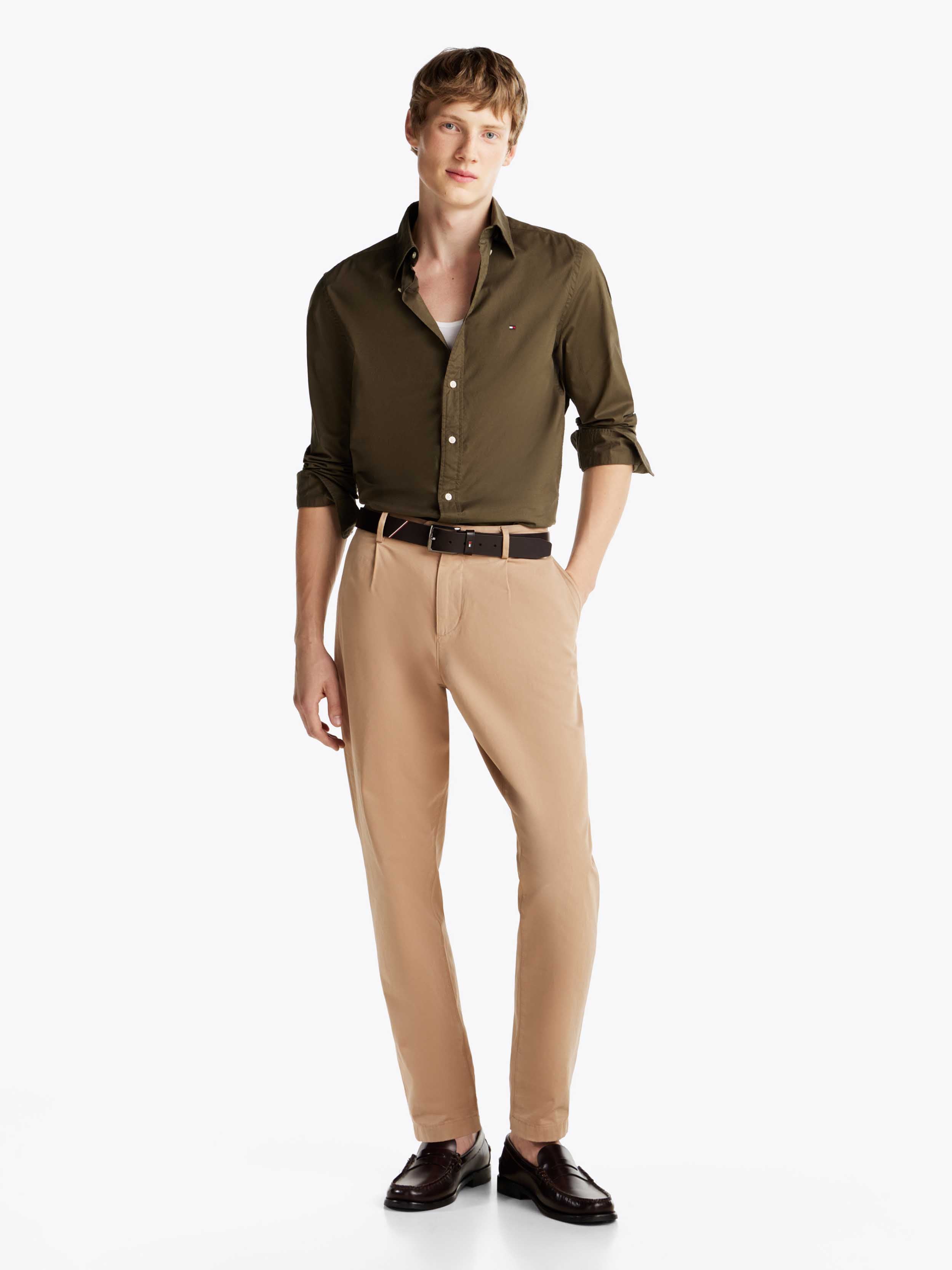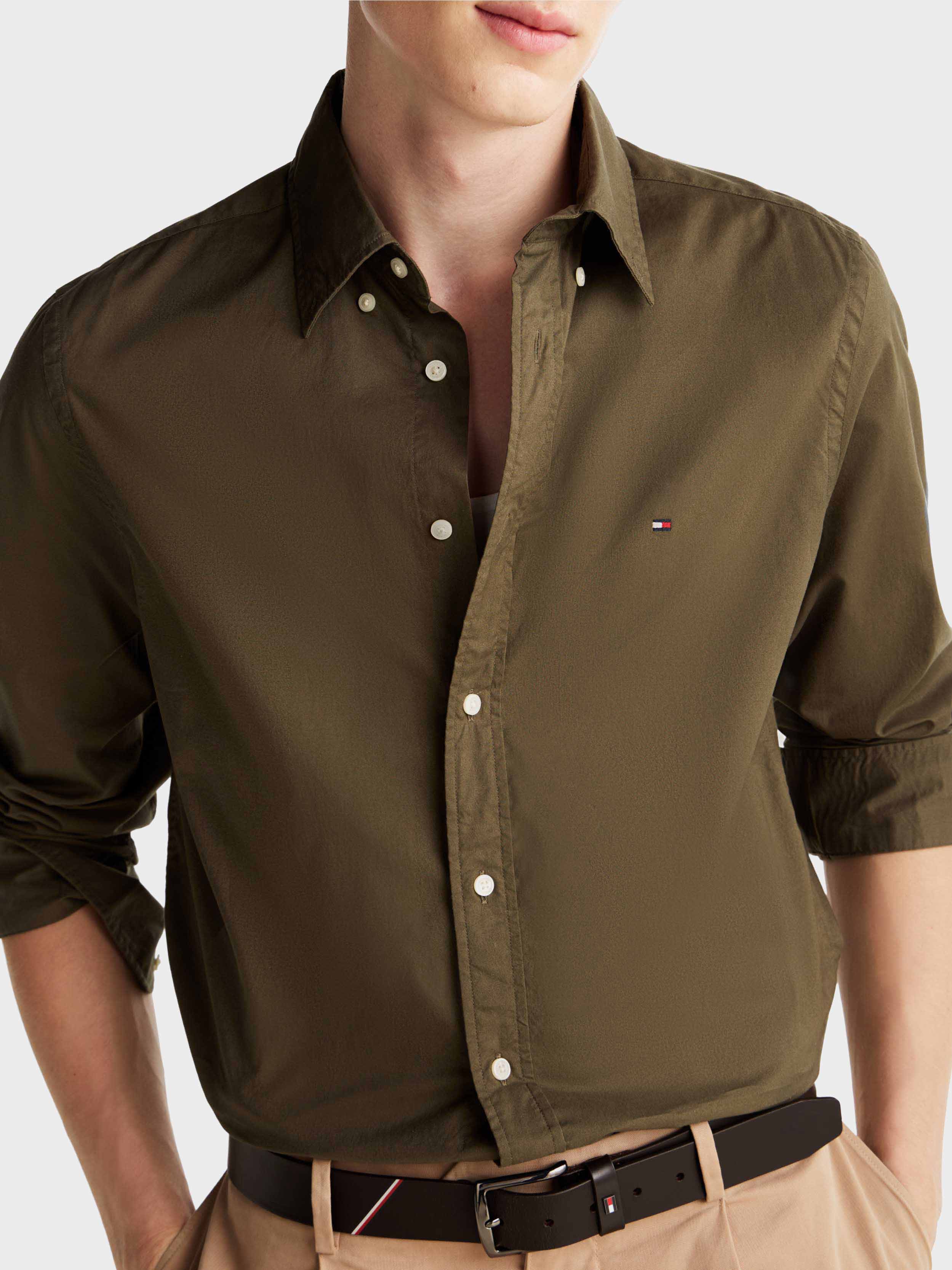 Tommy Hilfiger - FLEX POPLIN SOLID RF SHIRT , S , ARMY GREEN , Style MW0MW37550