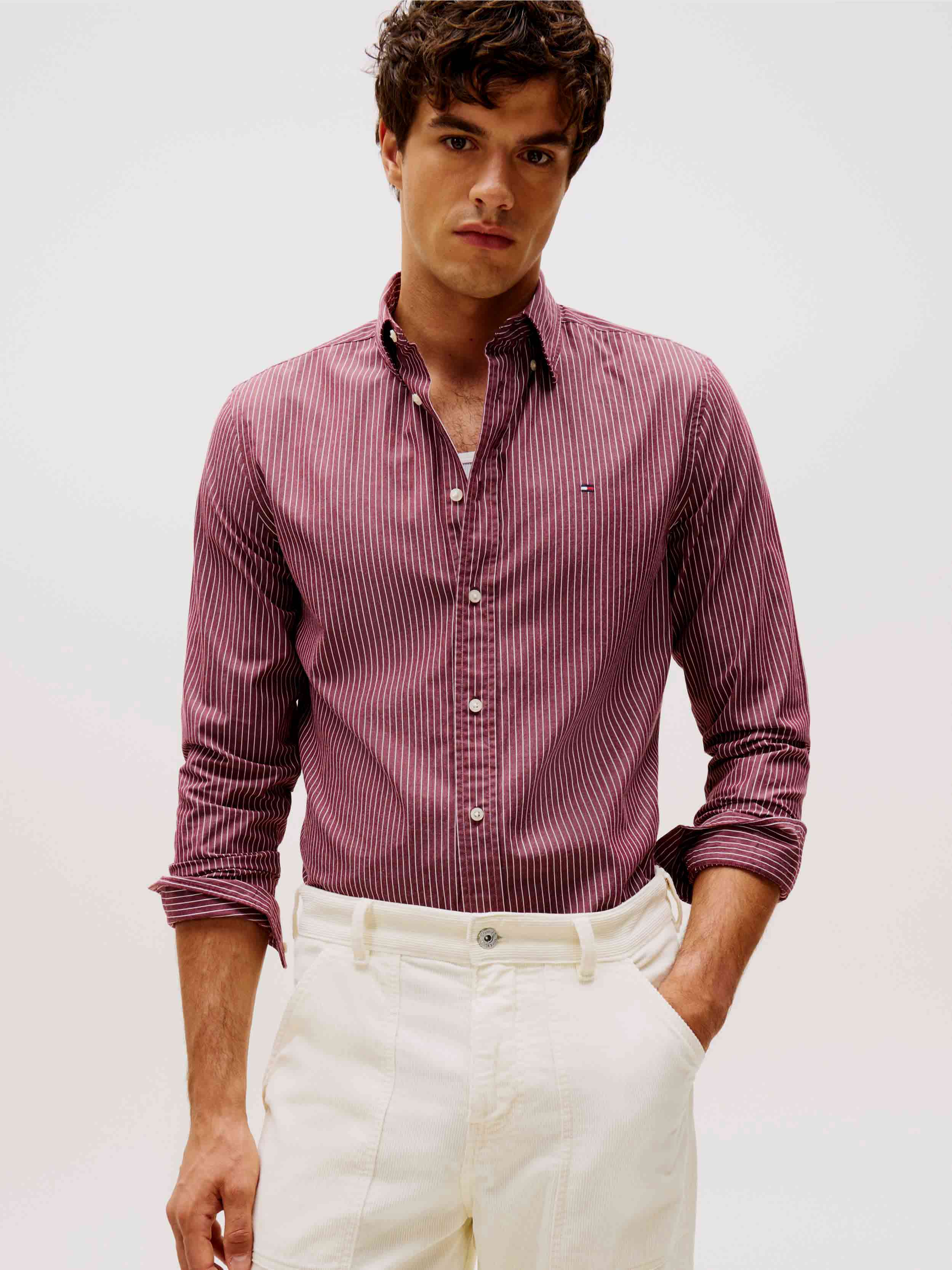 Tommy Hilfiger - CORE HAIRLINE POPLIN RF SHIRT , M , Deep Rouge / Stripe , Style MW0MW41399