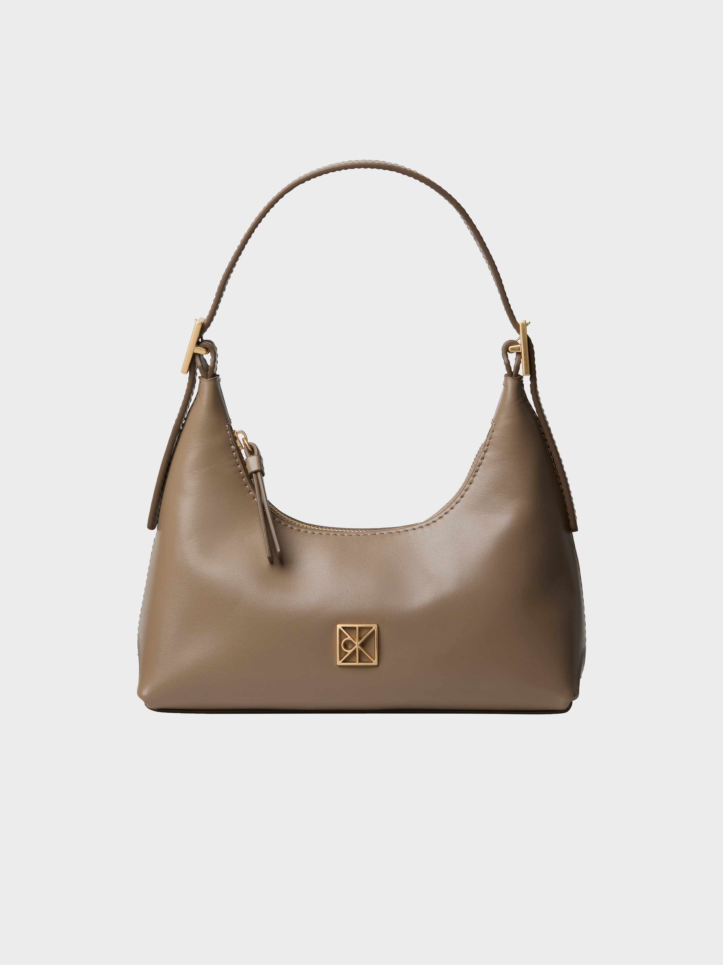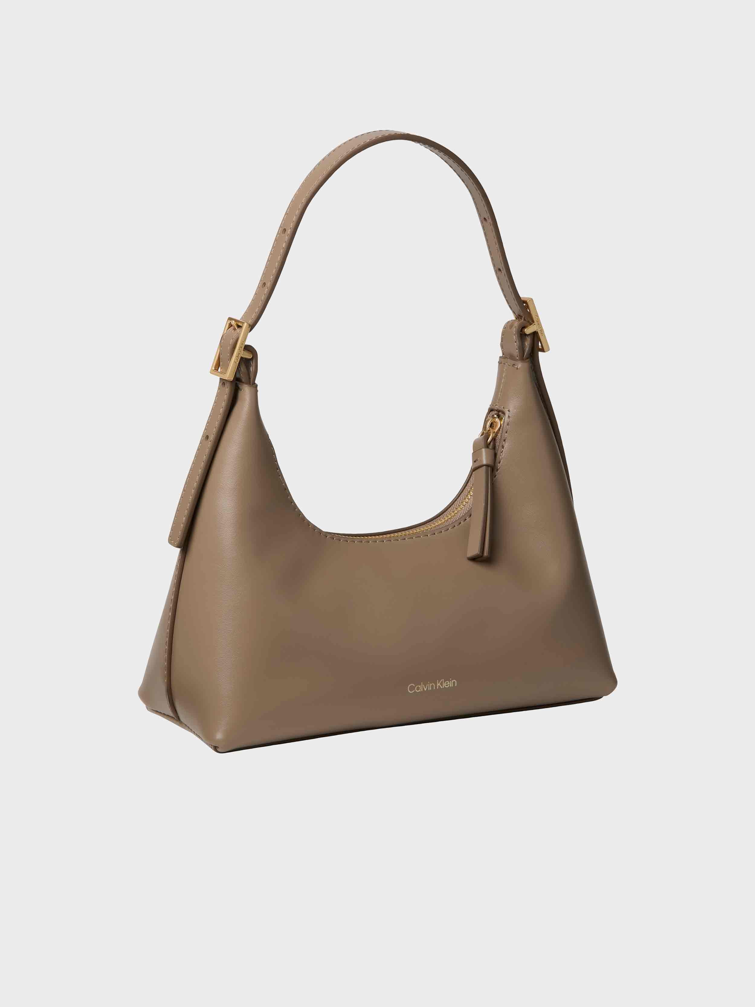 • Calvin Klein small handbag with clasp. Made of natural leather.