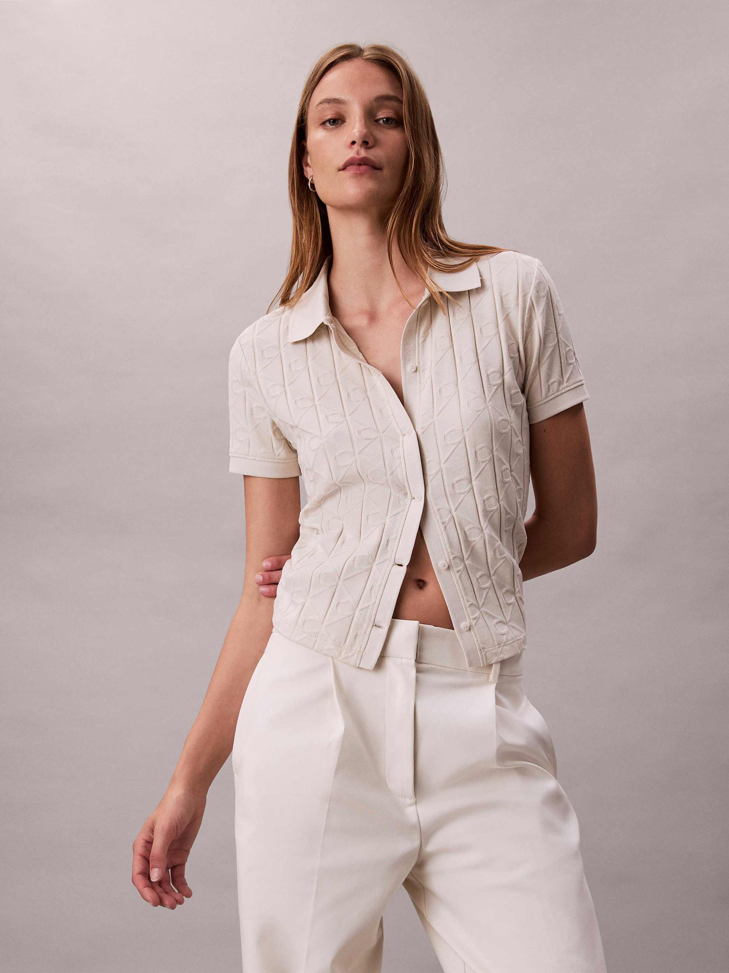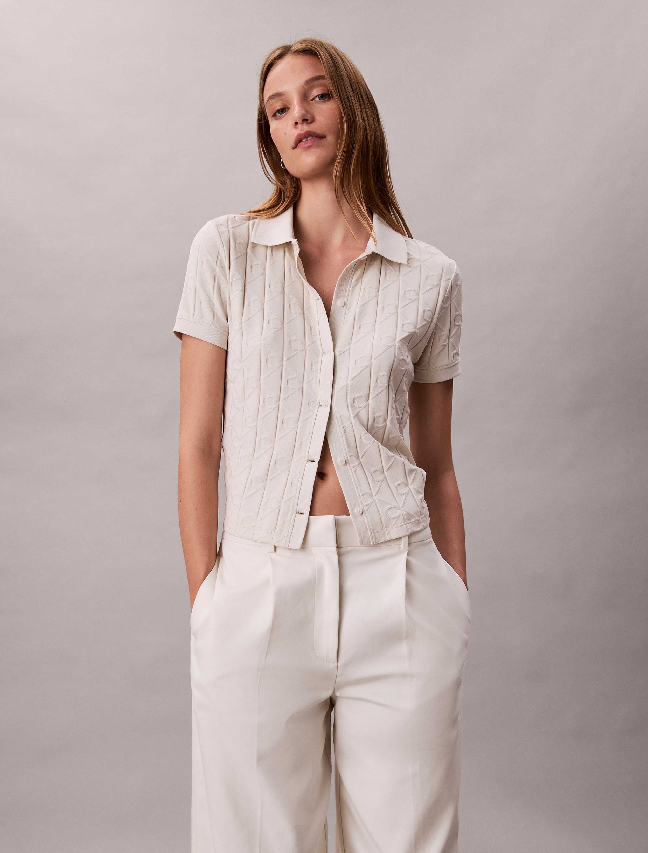 Calvin Klein - SS AOP JACQUARD POLO TOP , M , CHALK , Style LV044D209G