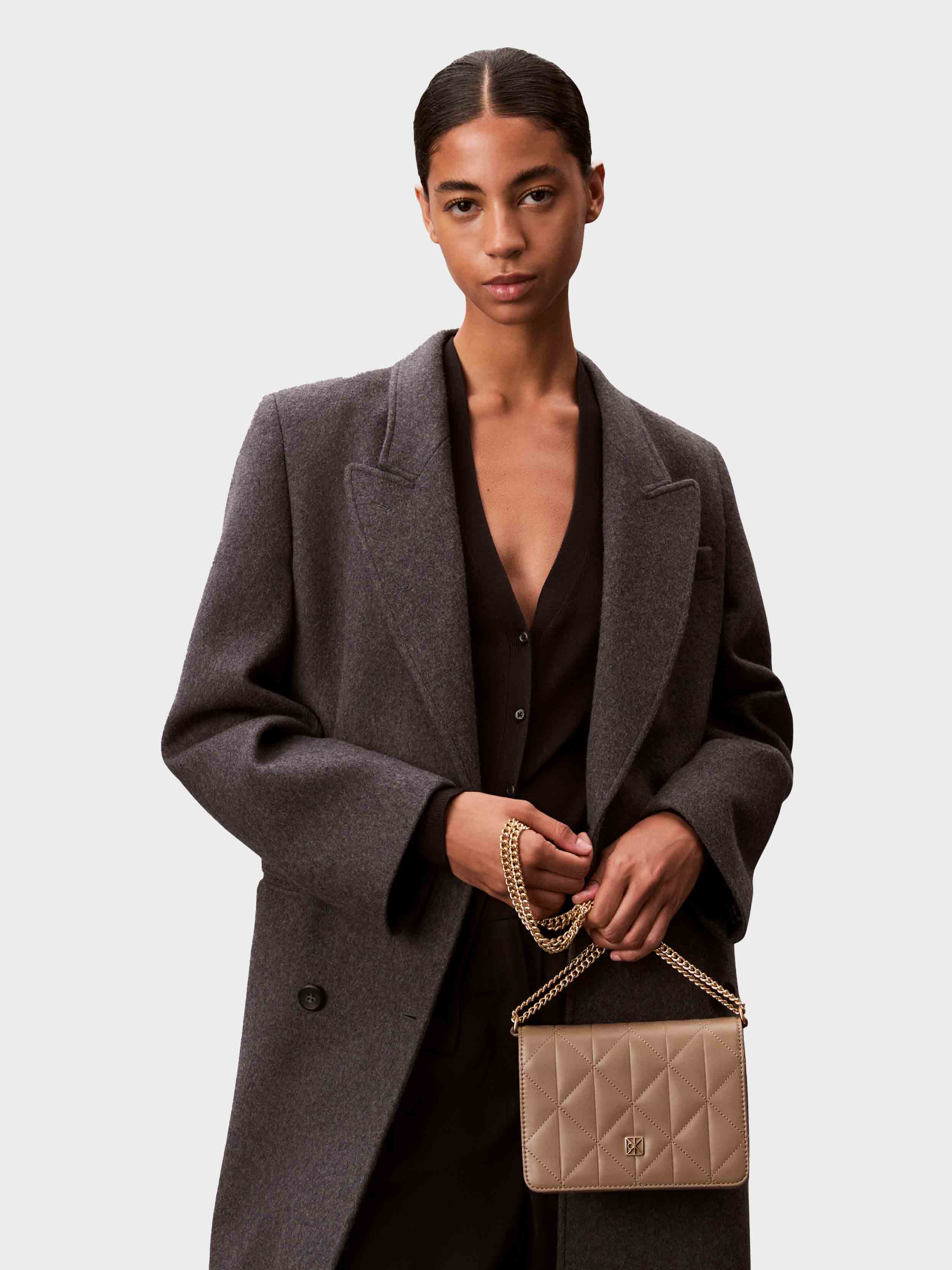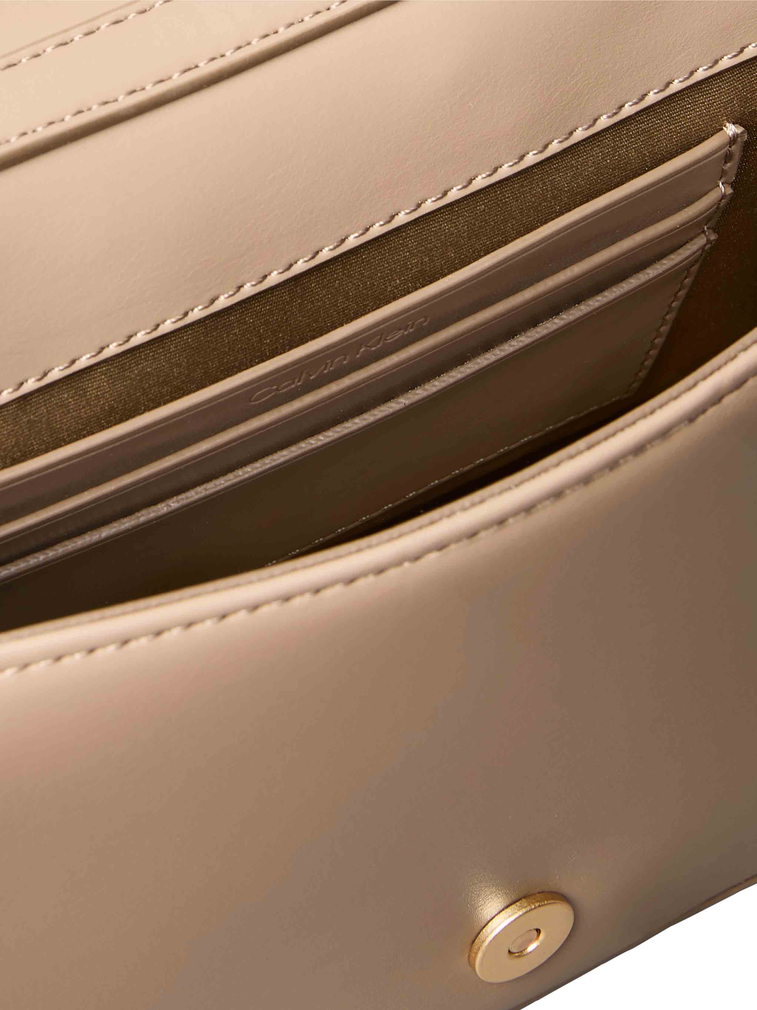 • Calvin Klein small handbag with clasp. Made of synthetic leather.