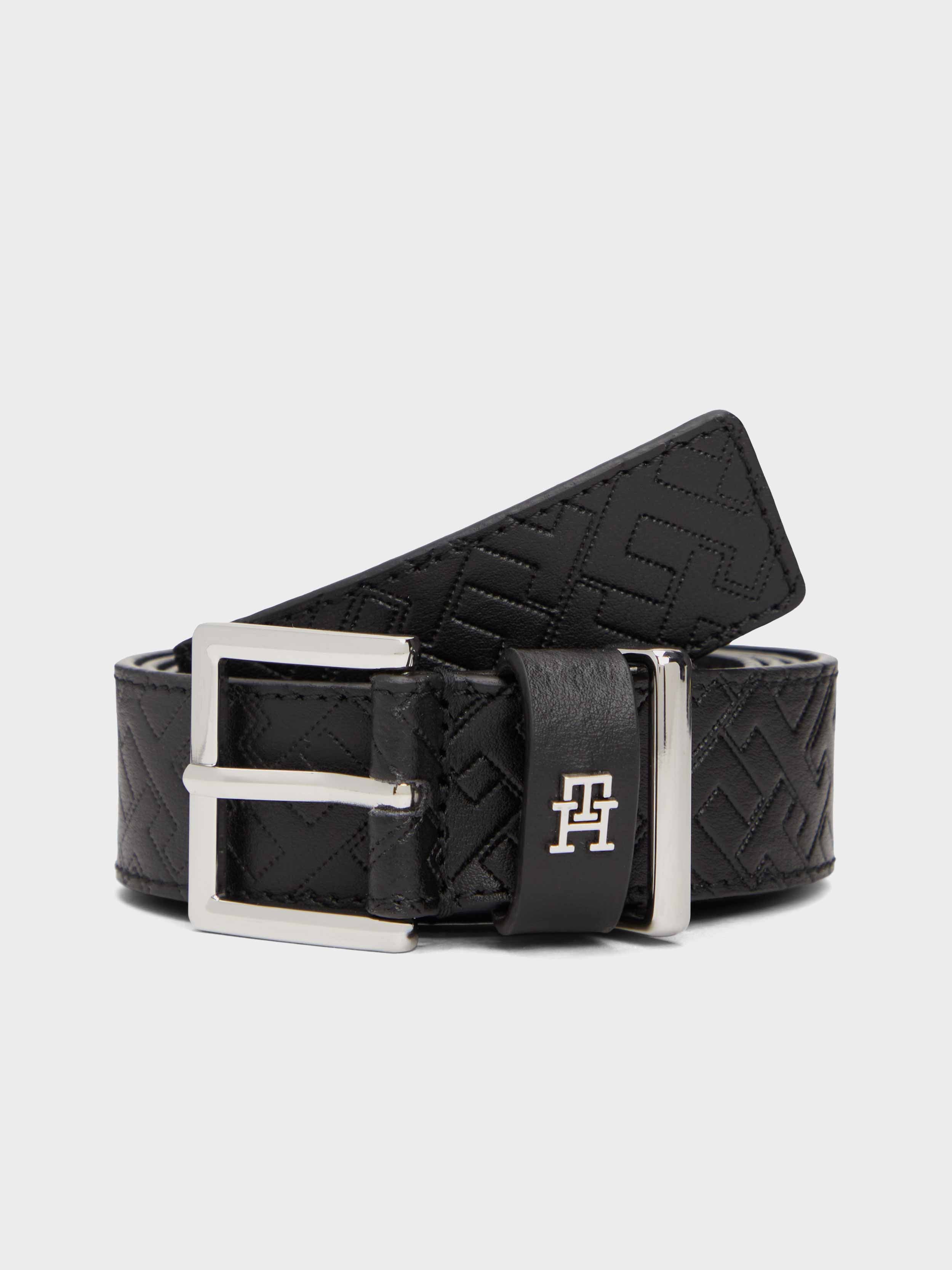 • Enhance semi-formal looks with this refined leather belt, featuring an all-over TH monogram topstitch design and coordinating metal plaque on the keeper.
