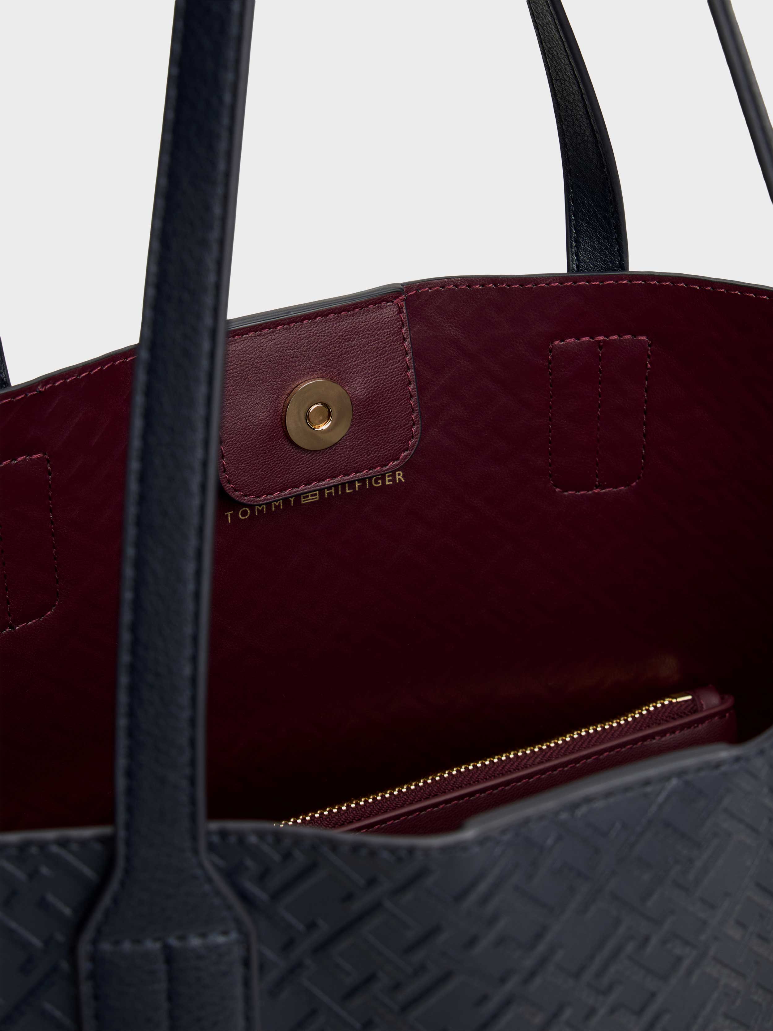• timeless TH monogram styling with a roomy interior and detachable zipped pouch for your valuables.Textured finish