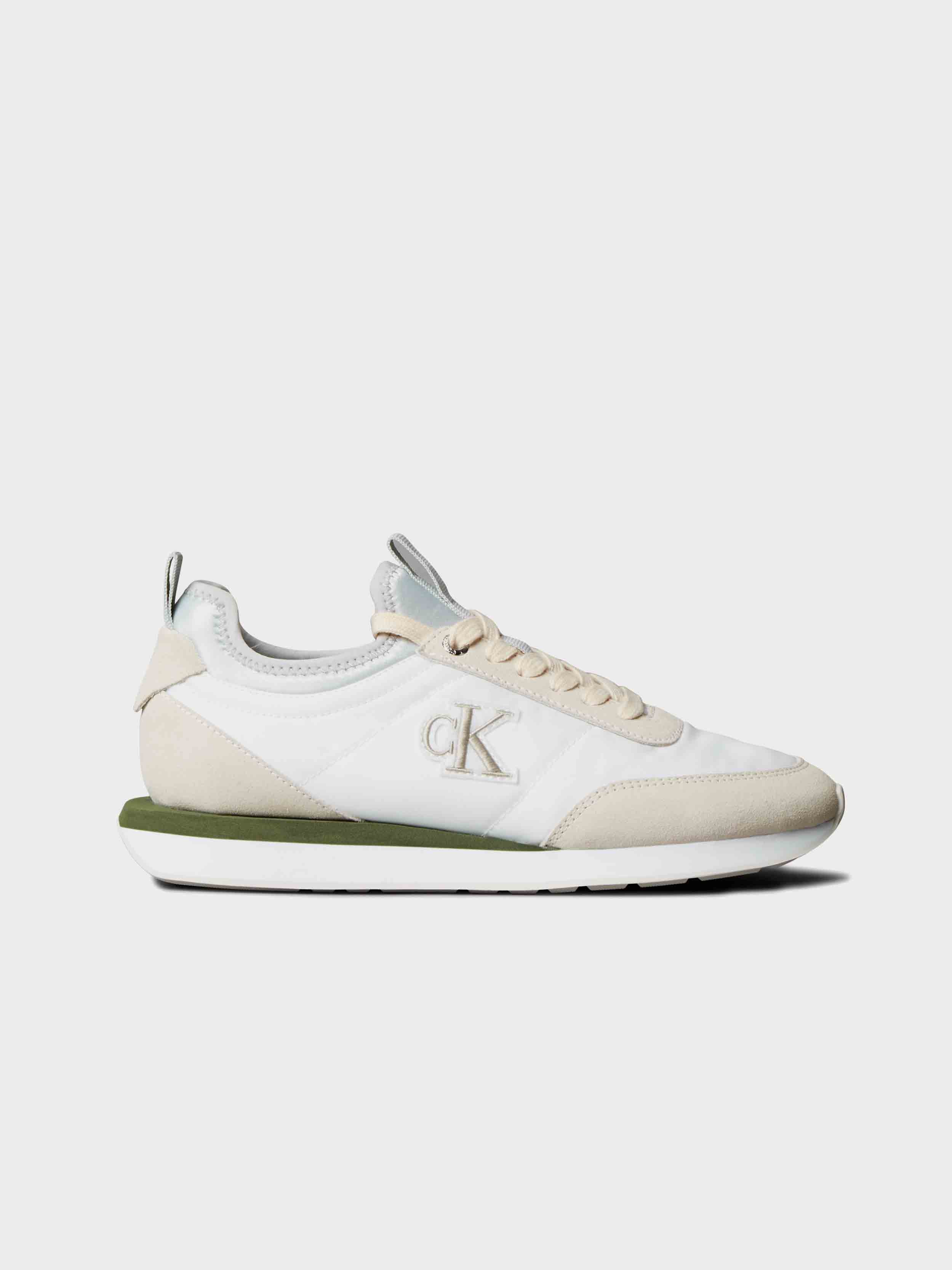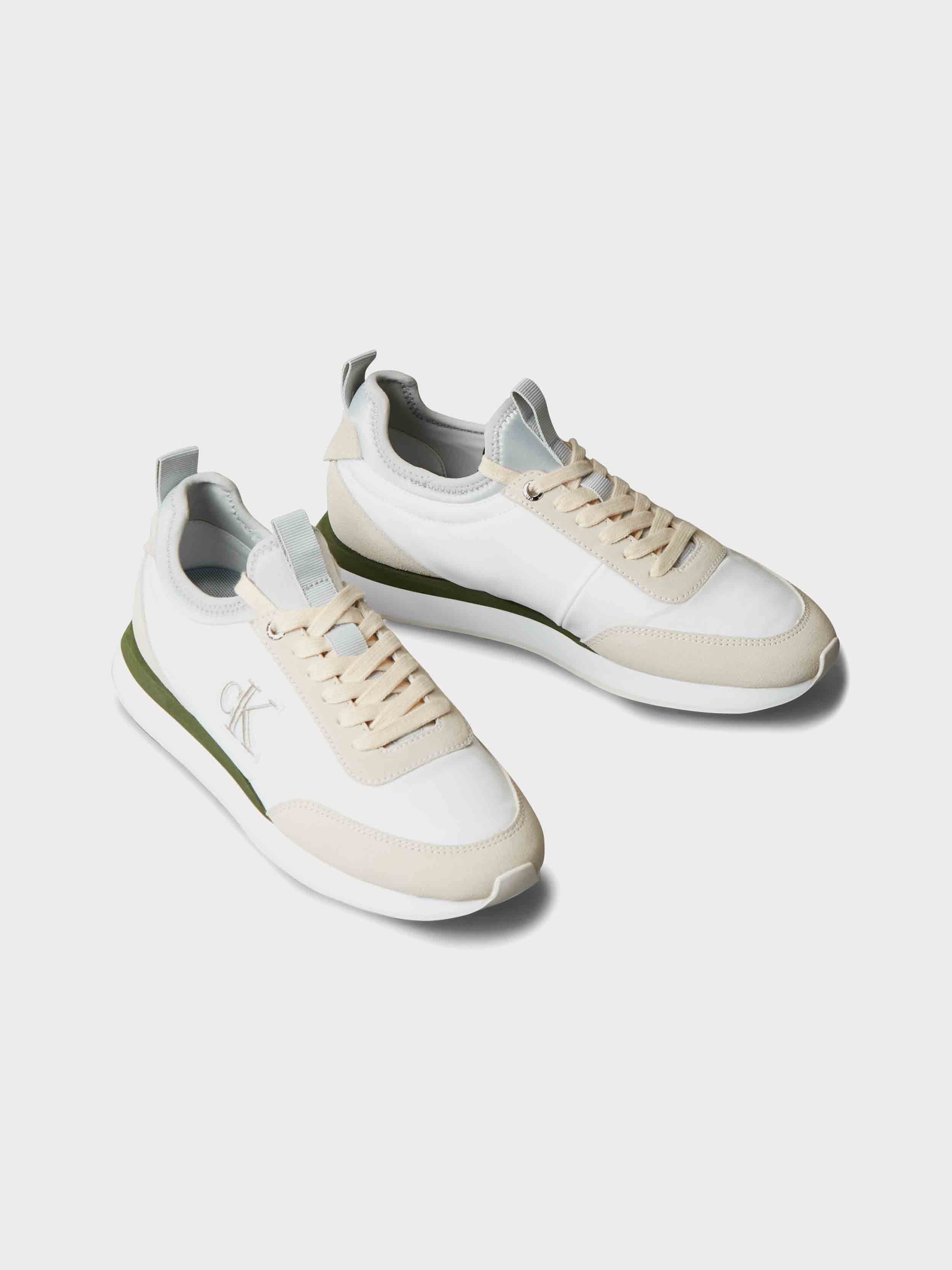 Calvin Klein - RETRO RUNNER SOCK LACEUP MIX MAT , 38 , Bright White/Light Cashew/Med Fore , Style YW0YW02060