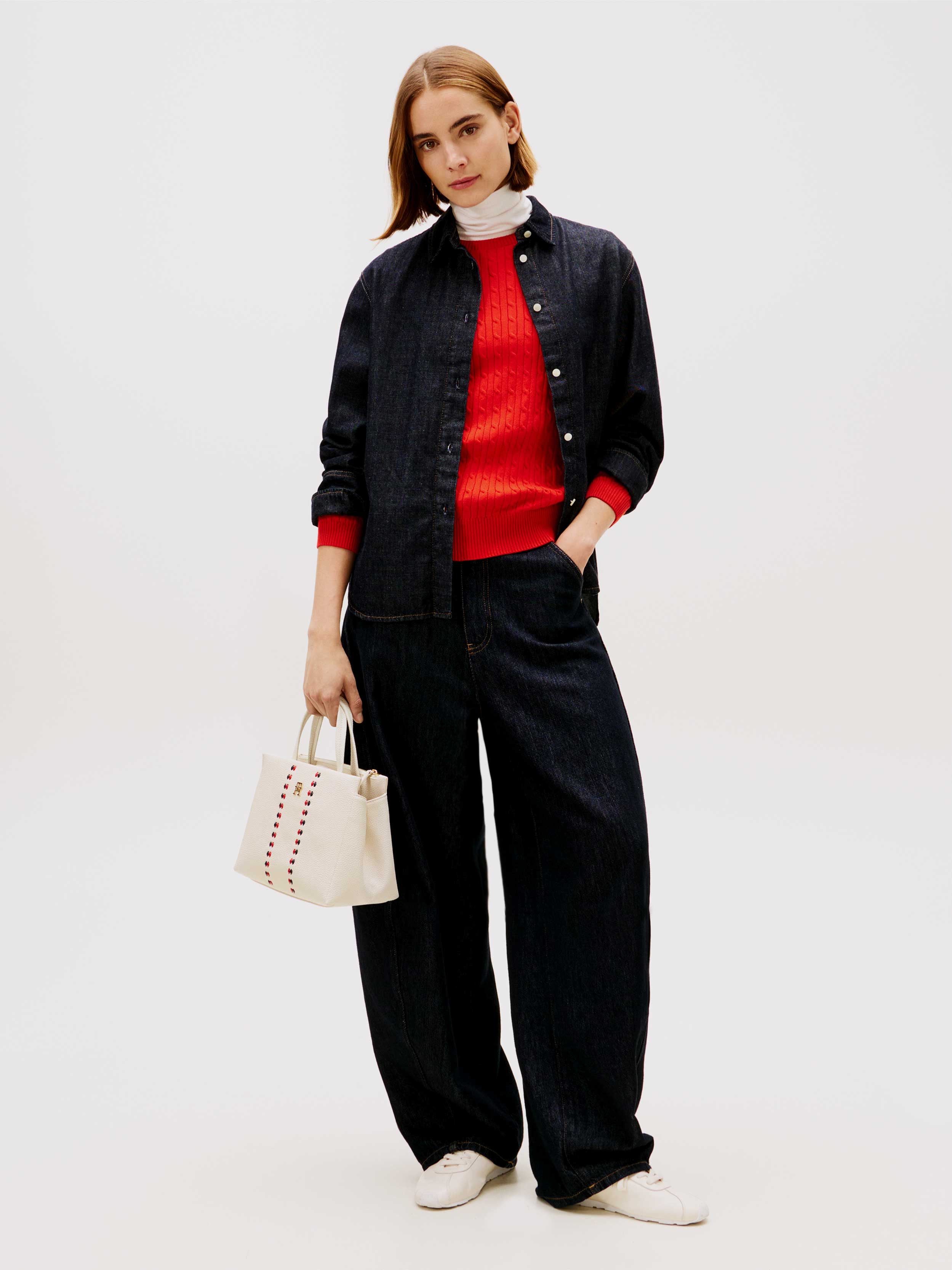 • medium-sized handbag from the Tommy Hilfiger collection. This zippered model is crafted from faux leather.