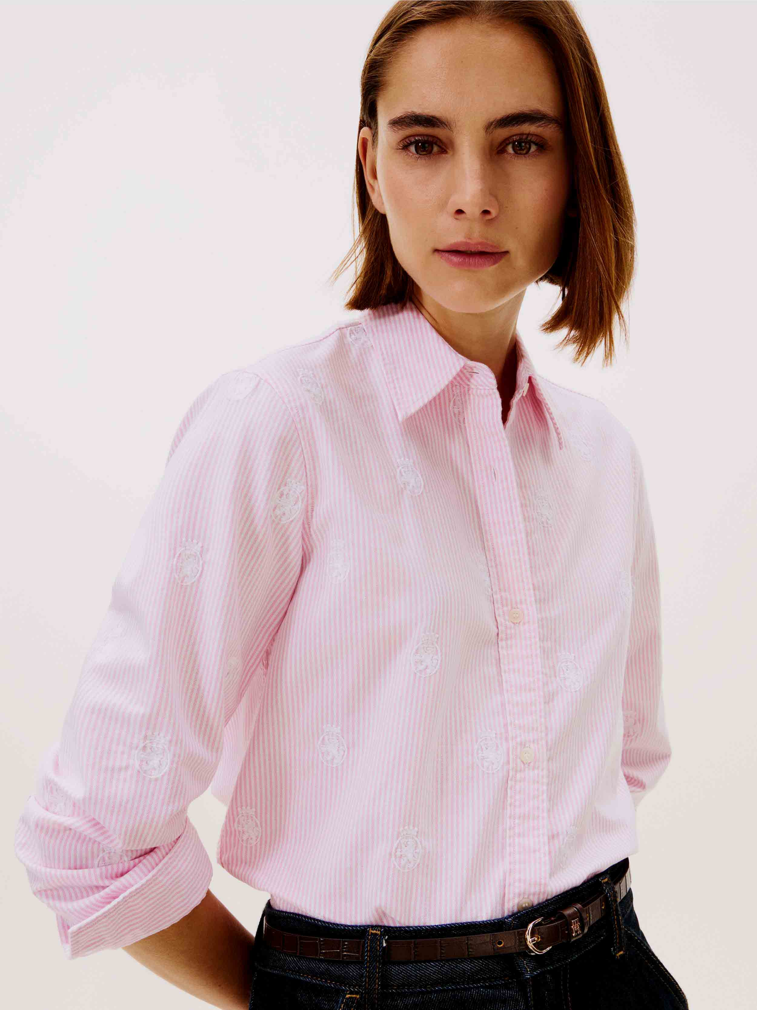 • This smart Oxford shirt is cut in a contemporary relaxed fit and finished with TH crest embroidery, adding a premium touch.