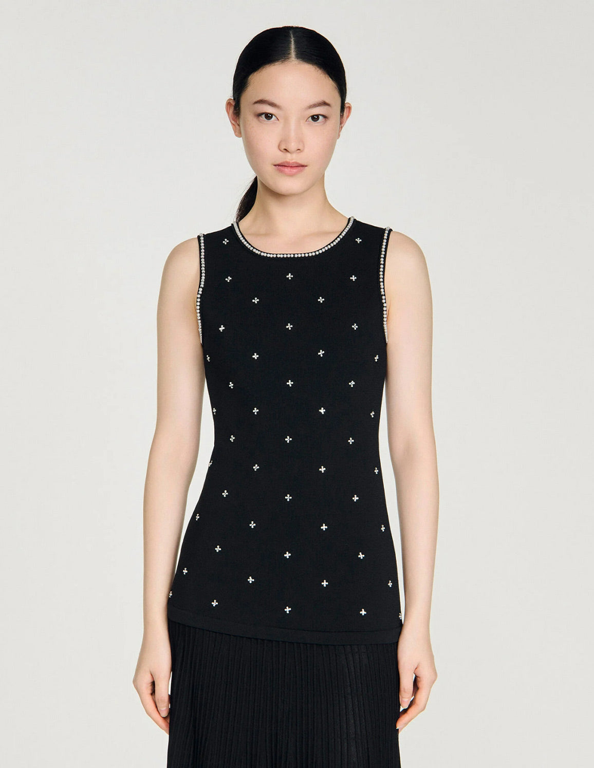 • Rhinestone and beaded top
