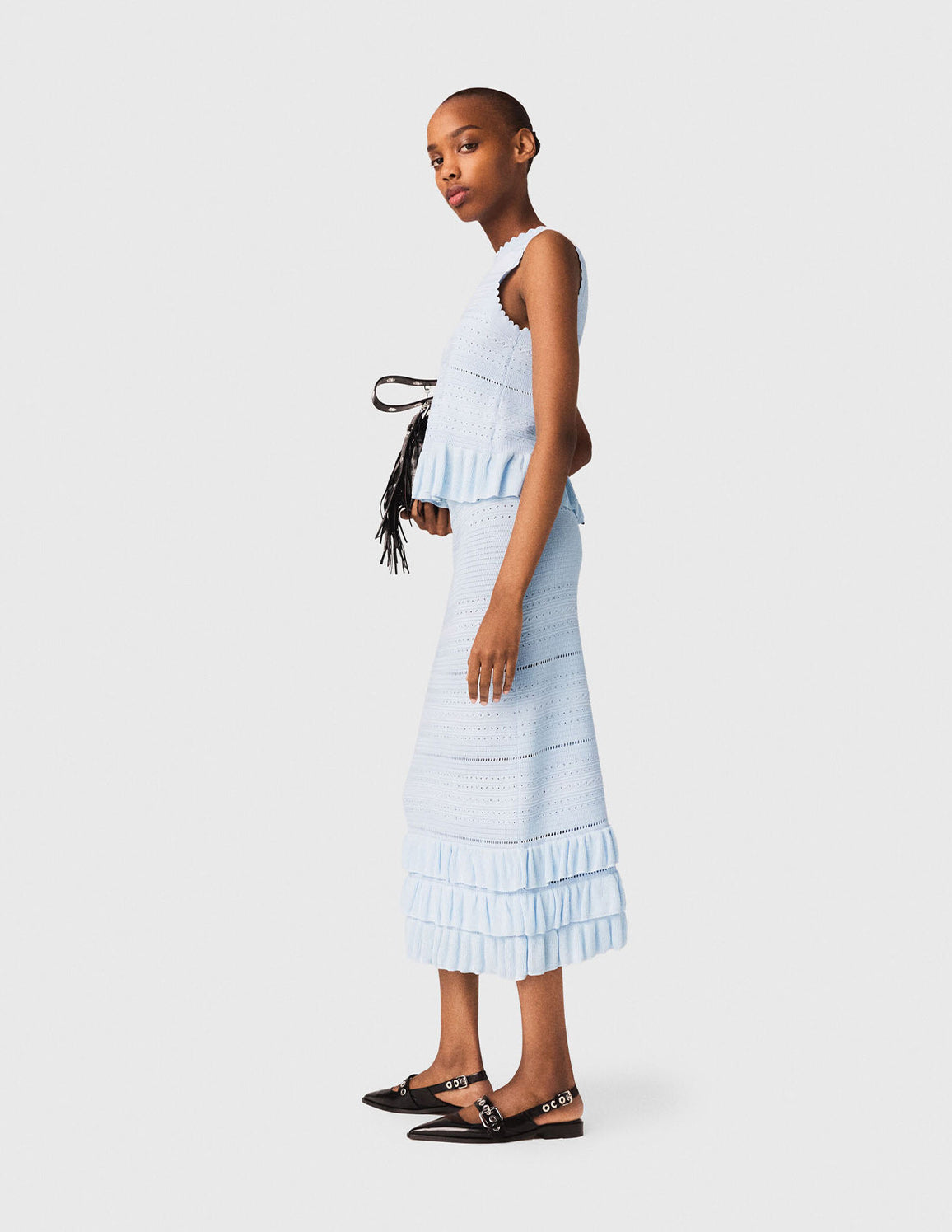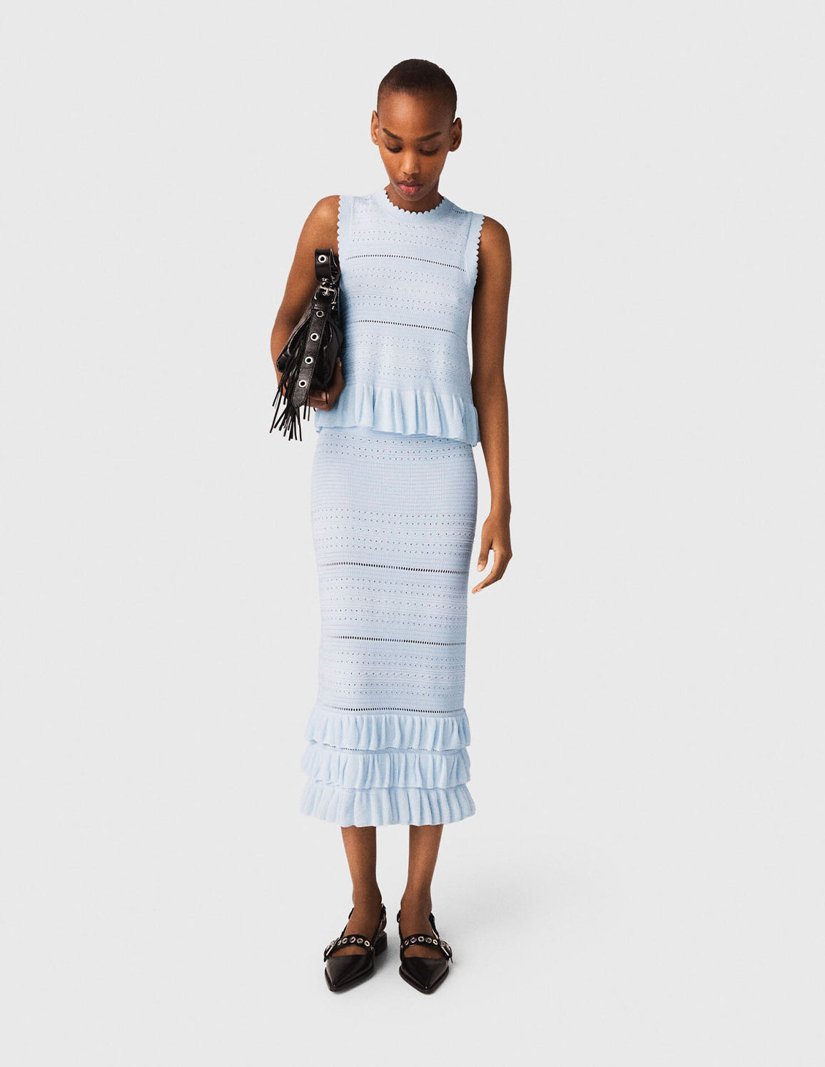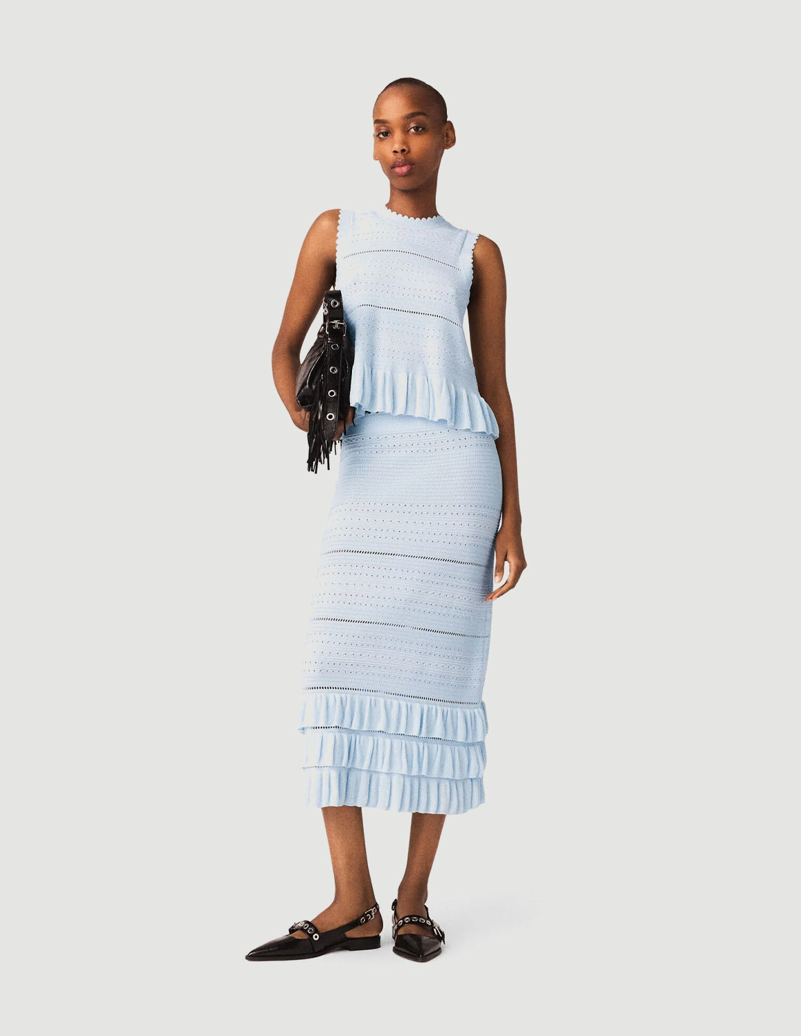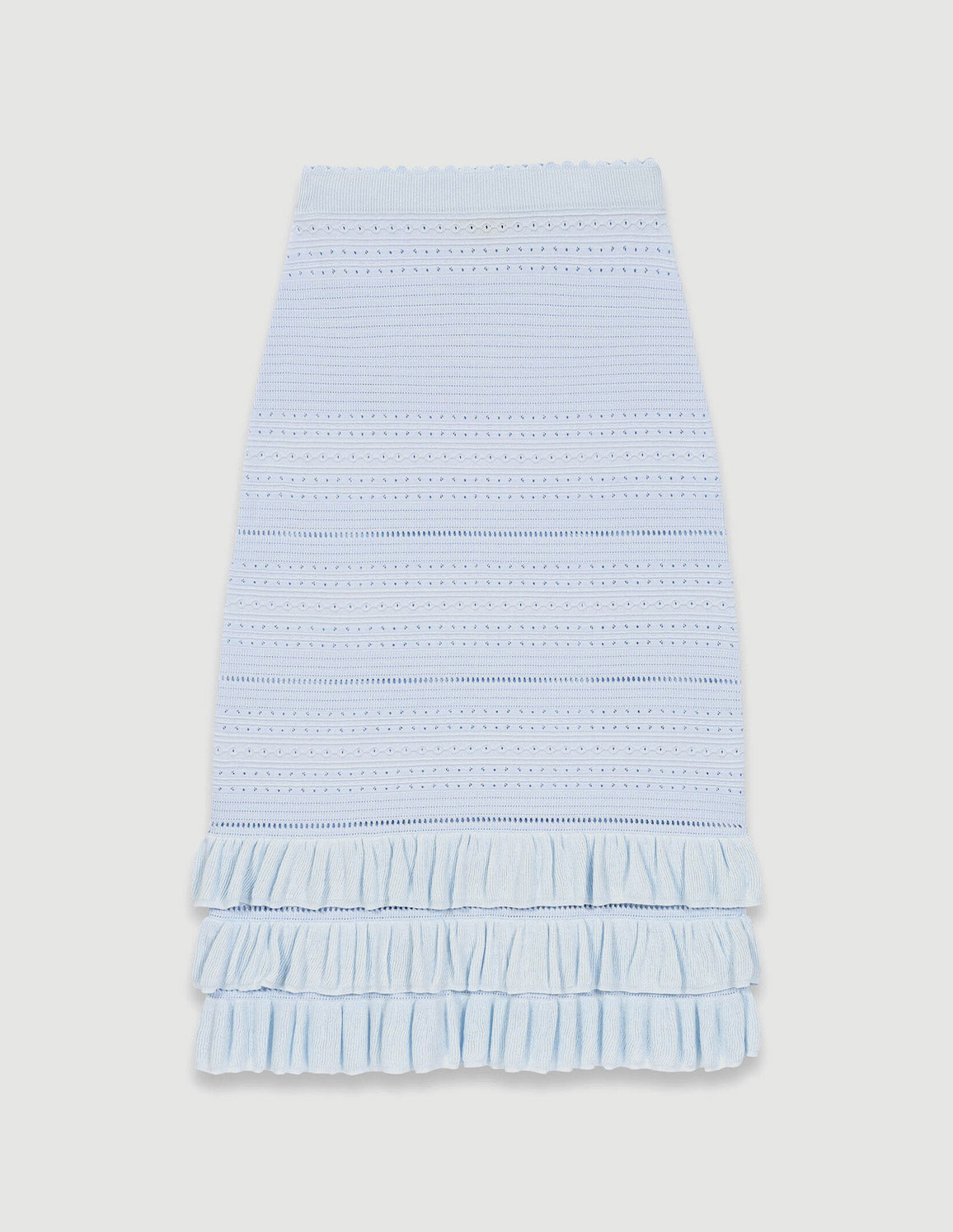 • Sky blue pointelle knit midi skirt