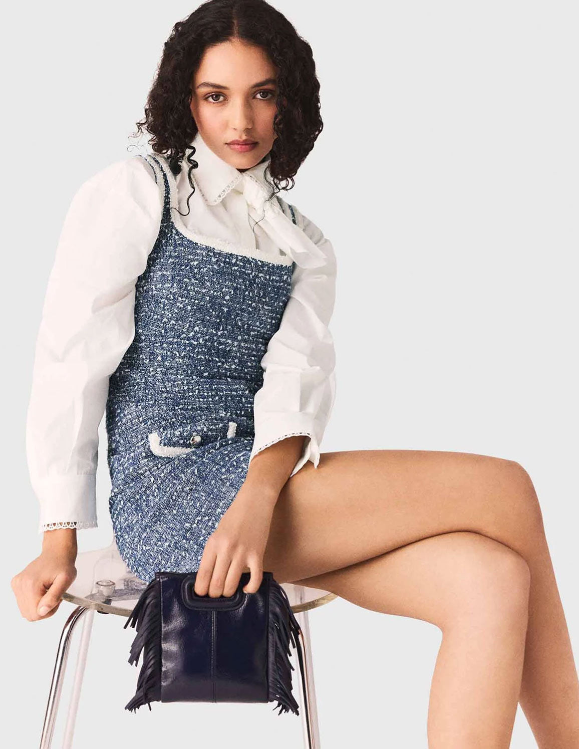 • Set a course for structured, modern femininity, inspired by the contrasting styles of the yacht club, where marled blue tweed is both essential and sophisticated.