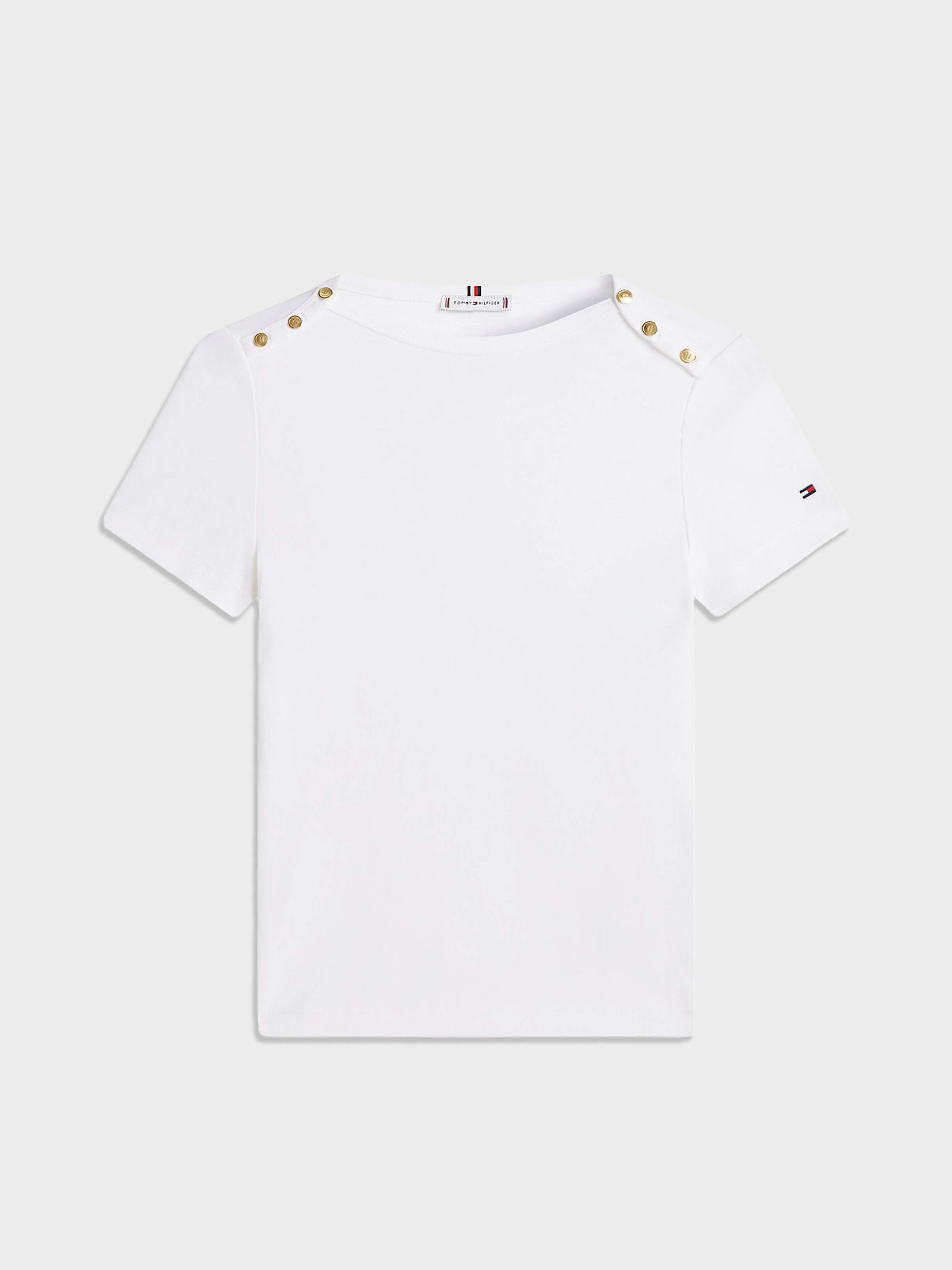• Tommy Hilfiger - Women's Gold Tone Button Slim Boat Neck T-Shirt