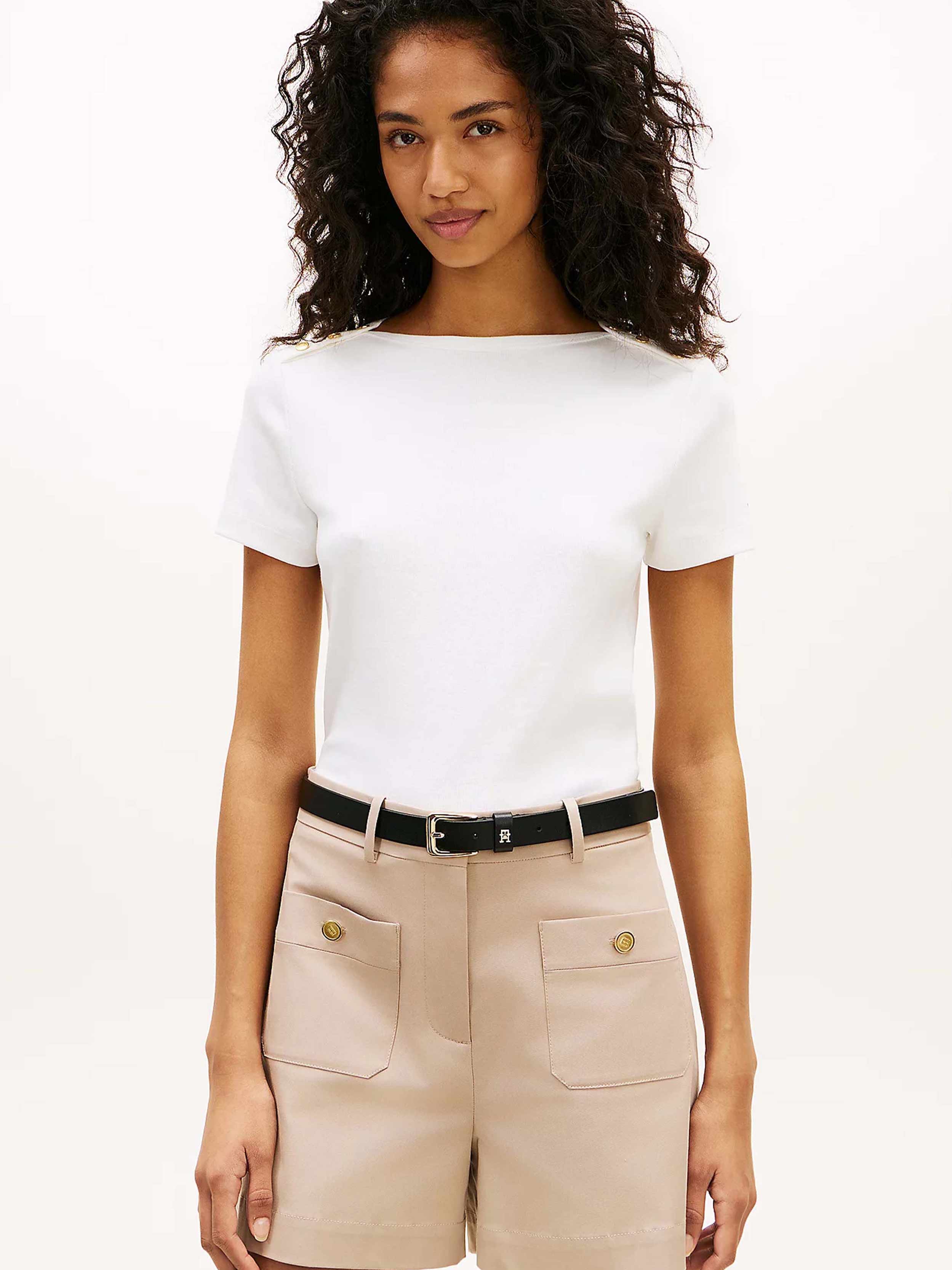 Tommy Hilfiger - Women's Gold Tone Button Slim Boat Neck T-Shirt