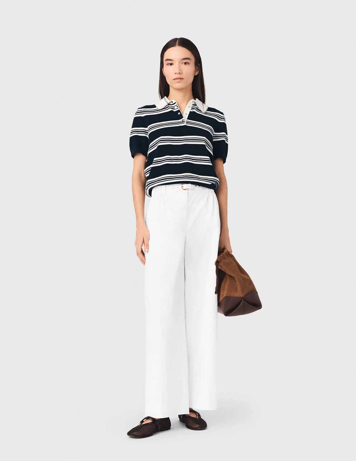 • Maje - Women's Wide-Leg Cotton Trousers