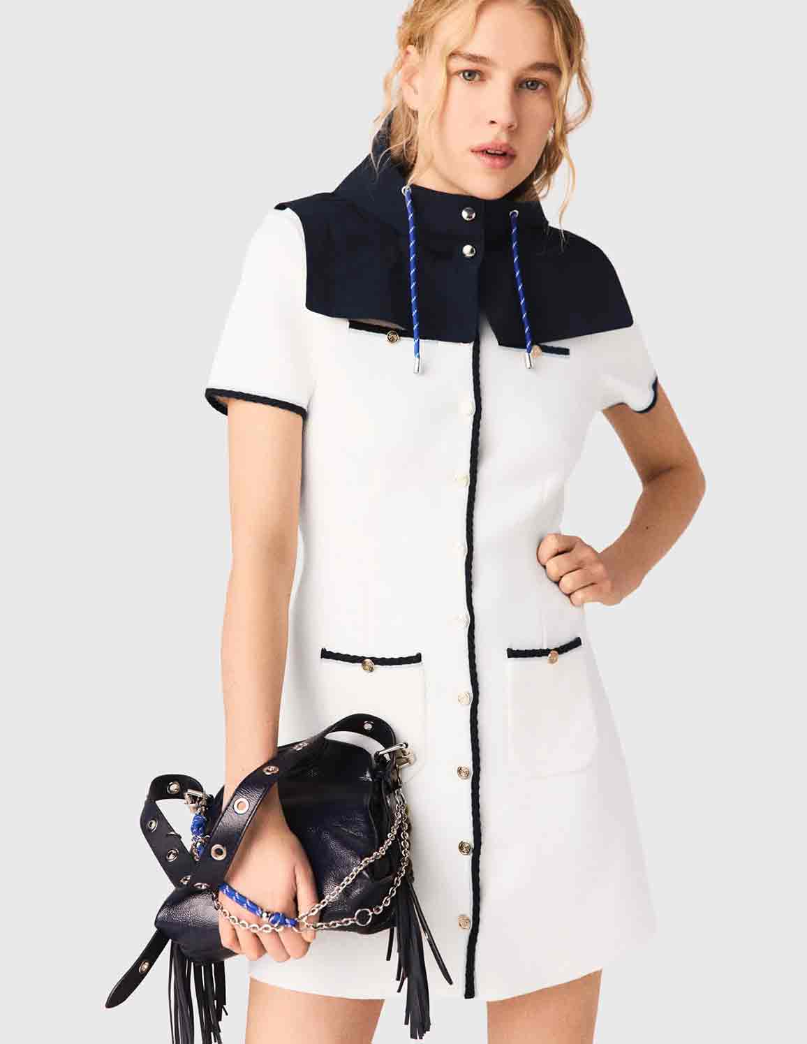 • The Maje woman combines urban elegance with a nautical spirit, drawing on classic styles and giving them a bold twist.